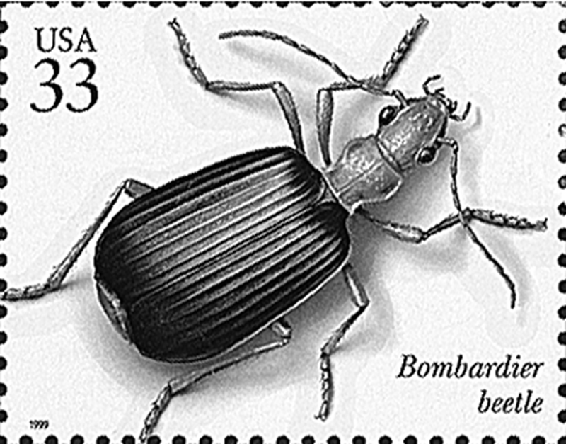 〔昆虫〕ホソクビゴミムシ《ヨーロッパ産の Brachinus 属の小形ゴミムシの総称;危険から身を守るときに揮発性の液体を噴射する》.