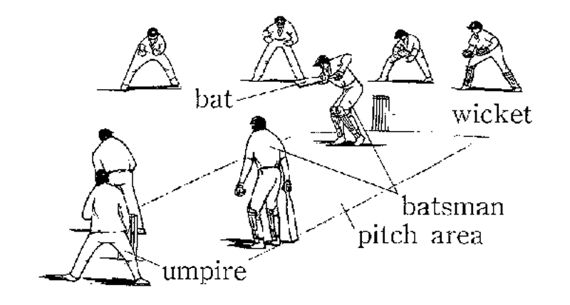 1クリケット《11人のチーム2組で bats と hard balls を用いる戸外の球技で英国の国技;中央に22ヤードの間隔で2つの wickets (三柱門)がある》. [関連] a 〜 match クリケット試合 / bowler 投手 / batsman 打者 / umpire 審判 / the pitch 三柱門と三柱門の間の部分 / a 〜 field クリケット競技場.