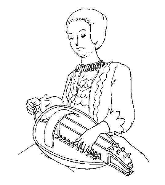 2手回し式リュート《卵を縦に割ったような形の中世の撥弦(はつげん)楽器》.(→【図】)🔗⭐🔉