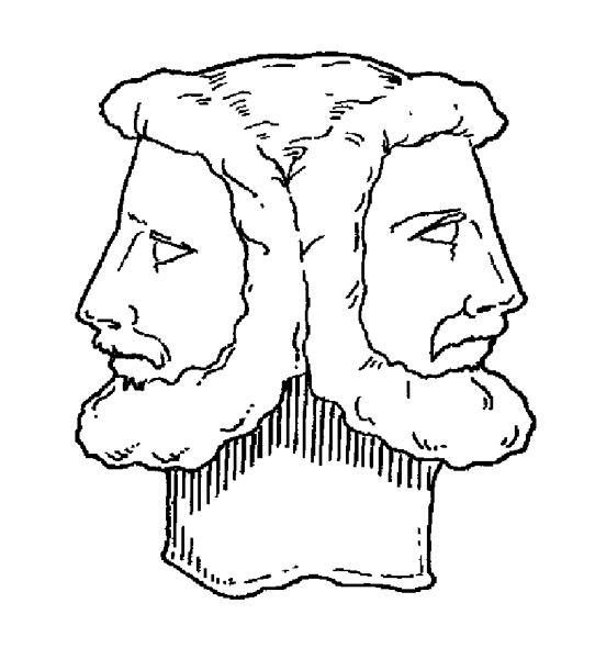1〔ローマ神話〕頭の前と後ろに顔をもった門や戸口の神;January はこの名に由来.🔗⭐🔉
