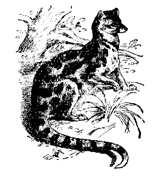 【名】〔動〕リンサン《ジャコウネコ科のアフリカリンサン(African 〜 )(Poiana richardsoni), オビリンサン(banded 〜 )(Prionodon linsang), ブチリンサン(spotted 〜 )(🔗⭐🔉