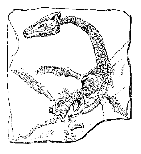 【名】〔古生物〕長頚竜, 首長竜, プレシオサウルス《長頚竜亜目(Plesiosauria) Plesiosaurus 属の絶滅した海生爬虫(はちゅう)類の総称》.🔗⭐🔉