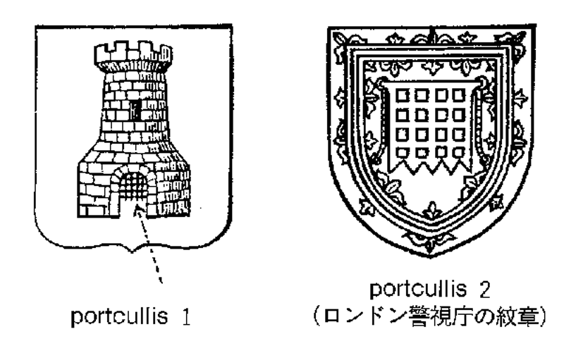 2〔紋章〕落し格子《紋章院の下級紋章管や職位の badge に使用》.🔗⭐🔉