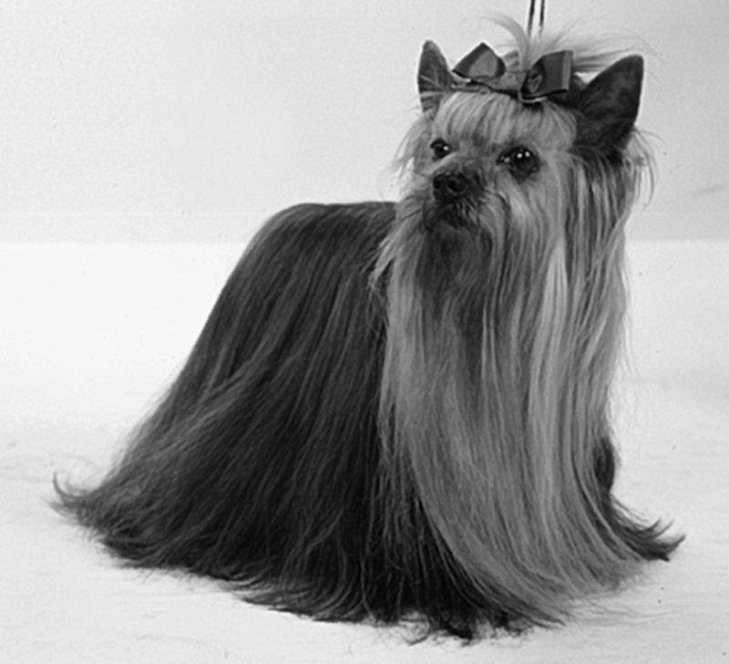 〔動〕ヨークシャーテリア《毛の長い小形の愛玩犬;yorkie ともいう》.
