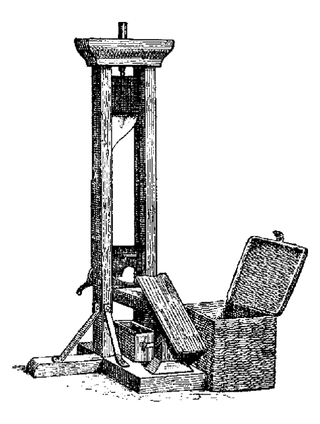 〔初18c;フランス語 guillotine より. J. Guillotin (ギロチンのような刑具の使用を提案したフランス人医師)から〕