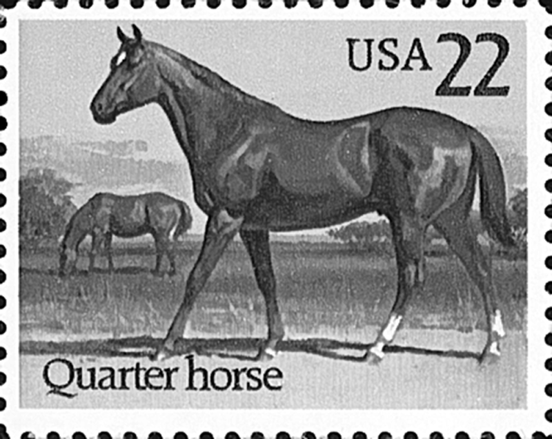 ((米))クォーター馬《4分の1マイル競走用に米国 Virginia 州で改良された強壮で足の速い馬》.