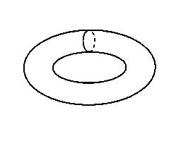 を軸として円 C を回転したとき,作られる図形の表面。輪環面(リンカンメン)。トーラス。