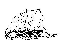 (1)ギリシャ・ローマ時代から中世にかけて,地中海を中心に使用された船の一種。主に戦用で,速力を重視して船体は細長く,多数の櫂(カイ)でこぐため船縁の低いのが特徴。船型や櫂の装備法・帆装などに多くの変遷がある。