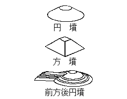 (1)日本で四世紀頃から七世紀頃まで行われた墳墓で石室・粘土槨などを築いて棺を副葬品とともに納め,土・礫などで覆って高塚を築いたもの。多くは当時の豪族などが被葬者。形の上から,前方後円墳・円墳・方墳・上円下方墳・前方後方墳などがある。
