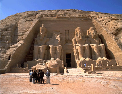エジプト,下ヌビアのナイル川西岸にある古代遺跡。正面に創建者ラムセス二世(在位 (前1298-前1232))の像がある巨大な岩窟神殿。アスワン-ハイダムの建設による水没を避け,旧位置の西方高所に解体移築された。