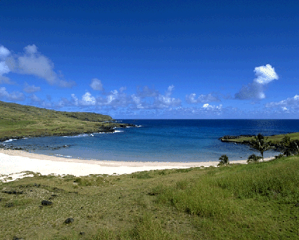 南太平洋にある孤島。チリ領。巨石像モアイの遺跡がある。
