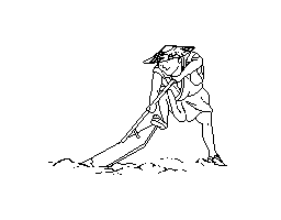 鍬の一種。長さ1メートルほどの刃部に斜めに柄を取り付けたもので,刃部の後端を足で踏み,土に突き込んで用いる。