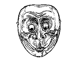 狂言面の一。口笛を吹くように口を丸めて突き出した表情の面。「蚊相撲」の蚊の精,「茸(クサビラ)」の茸の精,「石神」の石神などに使用。