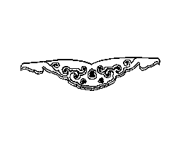 〔建〕 唐破風(カラハフ)の中央にある懸魚(ゲギヨ)。