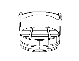 手と蓋(フタ)がついた,平たい桶(オケ)。料理などを運ぶのに用いる。