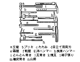 (1)釘などを打ちつける道具。頭部が鉄製の鎚。