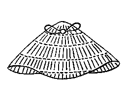 擂(ス)り鉢を伏せたような形の深編み笠。虚無僧(コムソウ),人目を忍ぶ武士などがかぶった。