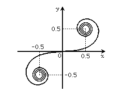 物理光学における回折現象の表現のためにコルニュ(M. A. Cornu 1841-1902)が用いた曲線。定速で走行中の車のハンドルを一定の速さできりこんでいく時,この車が走る道筋がちょうどこの曲線になる。そのため,高速道路のカーブにこの曲線の一部が利用される。コルニュの螺線。