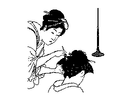 (2)結い上げた髪の毛の流れ。