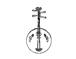 中国の撥弦(ハツゲン)楽器。胴は円形で平たく,棹(サオ)は短い。四弦を二弦ずつ同音に調弦する。日本では明清楽に用いられる。