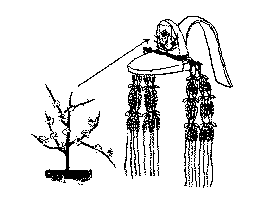 (2)作り物の枝や花。(ア)贈り物などに添える金銀糸や色糸で作った松や梅。「筥(ハコ)一よろひに薫物(タキモノ)入れて,―,梅の枝をしていどみきこえたり/紫式部日記」(イ)大嘗会(ダイジヨウエ)などの神事で,冠の巾子(コジ)の前に挿頭(カザシ)としてつける金銀の造花。(ウ)四角い綾織りの絹に,銀・銅などで造った梅・松などの花形を付け,組紐(クミヒモ)で飾ったもの。贈り物の箱や香箱・櫛箱などの調度品をおおうのに用いた。