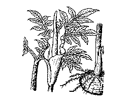 (1)サトイモ科の多年草。インドシナ原産。渡来は古く,各地で栽培される。葉は球茎から一個出て,葉柄は太く長く茎のように見える。球茎をこんにゃく玉という。こにゃく。