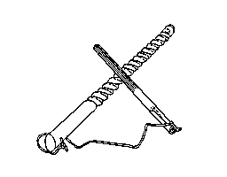 (1)簓{(1)}をこすって音を出す約30センチメートルの細長い竹。両面に一二ののこぎりの歯に似た刻み目をつけてある。
