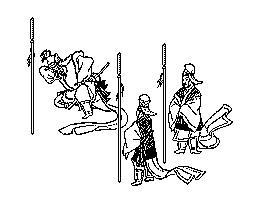 雅楽の一。五破陣楽の一。左方の新楽。太食(タイシキ)調の中曲。一人舞の走り舞。竜頭の甲(カブト)に貴人風の面をつけ,太刀・鉾(ホコ)を持ち右手は剣印を結んで舞う。散手。