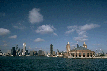 アメリカ合衆国,イリノイ州のミシガン湖に臨む都市。プレーリーと炭田・油田をひかえた同国第三の都市で,小麦・トウモロコシ・牛・豚・羊などの集散・加工が盛ん。農業機械・鉄鋼などの工業も発達。また,水陸交通の要地。