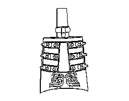 (2)中国古代の楽器。銅または青銅製で,周代のものは扁平な釣り鐘状。上部に棒状のつり手,胴に乳首状の隆起がつく。相似形のものを大きさの順にかけ並べて一組にしたものを編鐘といい,音階をなす打楽器として用いた。