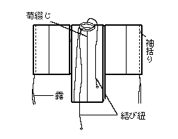 (2)狩衣(カリギヌ)の一。頸上(クビカミ)に長い二本の結紐(ユイヒモ)があり,これを結んで着用するもの。襟を内側に折り込んで垂領(タリクビ)にも着ることができ,裾(スソ)を袴(ハカマ)に着込めることもある。また,胸と袖付けに二つずつの菊綴(ト)じがつく。下級官吏・地方武士・庶民の平服であったが,のち武家の礼服となり,公家や元服前の少年も着用するようになった。本来は{(1)}で作ったが,のちに絹・綾(アヤ)も用いられた。水干の狩衣。