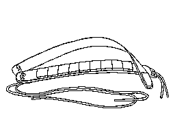 礼服束帯の時,袍(ホウ)の腰にしめる帯。両端の