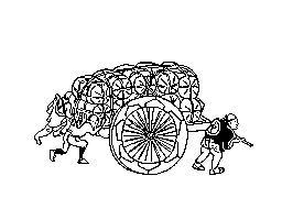 大きな二輪の荷車。江戸前期頃から主に関東地方で用いられた。大八。