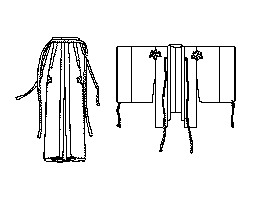(2)大形の家紋を五か所に染めた直垂(ヒタタレ)。袴にも五か所に紋をつける。室町時代に始まり,江戸時代には五位以上の武家の通常の礼服となった。