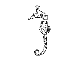 ヨウジウオ目の海魚。全長約8センチメートル。全身が骨質板に覆われ,馬に似た頭部は長い管状の吻(フン)を突き出す。尾部は細長く伸びて海草に巻きつくのに適する。体色は褐色のものが多い。遊泳時は体を垂直に立てる。雄は育児嚢を有し,この中へ雌が産卵すると孵化まで卵を保護する。古くから安産のお守りとする。北海道以南の沿岸に分布。日本近海にハナタツ・オオウミウマなど九種がいる。海馬(カイバ)。ウミウマ。リュウノコマ。