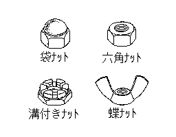 (1)ビス・ボルトと組み合わせて締め付けに用いるもの。多くは六角形で中心に穴をあけ雌ねじが切ってあるが,蝶ナット・袋ナットなど用途に応じた特別な形のものもある。