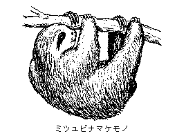 (「樹懶」と書く)貧歯目ナマケモノ科に属する哺乳動物の総称。一見サルに似た体形で,体長60センチメートル前後。耳は目立たず,尾は短いか無い。常に肢端のかぎ爪を木の枝にかけてぶら下がっている。きわめて不活発で,全身をおおう長い毛は,付着したコケのためにしばしば緑色を帯びる。中南米の森林にすむ。ミツユビナマケモノ・フタユビナマケモノなど。