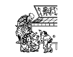 箱の中に数枚の絵を入れ,口上とともに順次これを回転させ,ひとつづきの物語や景色などを,凸レンズを取り付けたのぞき穴から見せる装置。からくりめがね。のぞきめがね。のぞき。