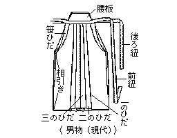 (1)男袴の後ろ腰の,厚板の芯を入れて仕立てた部分。腰板。