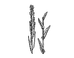(2)アブラナ科の越年草。山野・海辺に自生。茎は直立し,高さ30〜90センチメートル。葉は互生し,披針形,基部は矢じり形で茎を抱く。春,茎頂に白色の小花を総状につける。果実は細長く上を向いてつき,裂開する。
