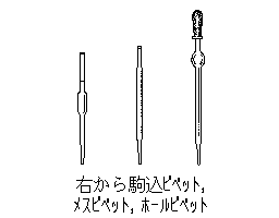 分析用化学実験器具の一。一定体積の液体を正確に採取するために用いる。先端が細く中央部がやや太い目盛り付きのガラス管製で,上端に口またはゴムキャップをつけて試薬を吸い上げる。ホールピペット・メスピペット・駒込ピペットなどがある。