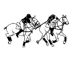 馬に乗り,マレット(先が T 字型になっている杖)でボールを打って相手のゴールに入れる競技。一チーム四名から成る。