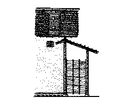 片流れ屋根の上部を折り曲げた,切妻造りに似た屋根の造り方。また,切妻造りの屋根の両面の長さが著しく違うもの。