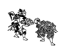 (2)新年に家々を回り祝言を述べ,舞を見せる門付(カドヅケ)芸能。風折り烏帽子(エボシ)に大紋の直垂(ヒタタレ)姿の太夫(タユウ)が,大黒頭巾にたっつけ袴の才蔵の鼓に合わせて演ずる。江戸時代に千秋(センズ)万歳より興り,三河万歳・大和万歳・尾張万歳・秋田万歳などがある。[季]新年。《―や左右にひらいて松の蔭/去来》