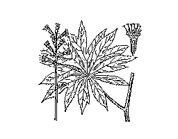 (2)キク科の多年草。山地の林下に生える。茎は高さ約1メートルで,分枝しない。根葉は柄が長く,葉身は大きい円形で掌状に七〜九深裂し,裂片はさらに切れ込む。夏,茎頂に白色の頭花を円錐状につける。[季]夏。