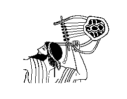 古代ギリシャなどで用いられた竪琴(タテゴト)。共鳴胴にたてた二本の支柱に横木を渡し,弦をはったもの。