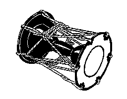 能楽や長唄・歌舞伎の囃子の打楽器。左手で緒を握り右肩へのせ右手で打つ。弟鼓(オトツヅミ)。小胴(コドウ)。