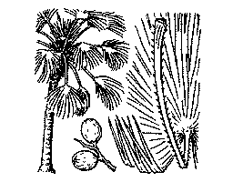 ヤシ科の常緑高木。暖地の海岸付近に生え,シュロに似る。高さ10メートル近くになる。葉は大きな扇状で柄が長く,幹の頂に多数集まってつく。花は黄色で小さく,果実は楕円形で青色。古名,あじまさ。