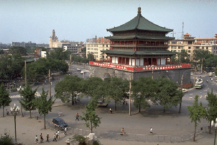 中国,陝西(センセイ)省の省都。渭水の南岸に位置し,綿織物・製鉄・機械などの工業が盛ん。周・秦・漢・隋・唐の都として栄えた。旧市街は唐の長安の皇城の地に位置する。シーアン。