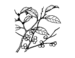 うめ-もどき [3] 【梅擬】 モチノキ科の落葉低木。山中に自生する。葉は互生し,ウメに似る。雌雄異株。六月頃,葉腋に淡紫色または白色の四,五弁の花をつける。秋に赤熟,まれに白熟する球形の小果を結ぶ。また庭木ともする。[季]秋。 梅擬 [図]